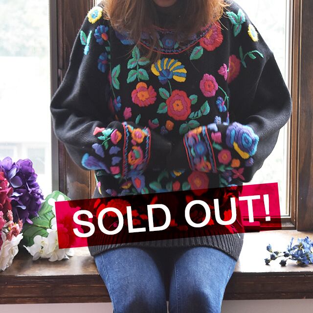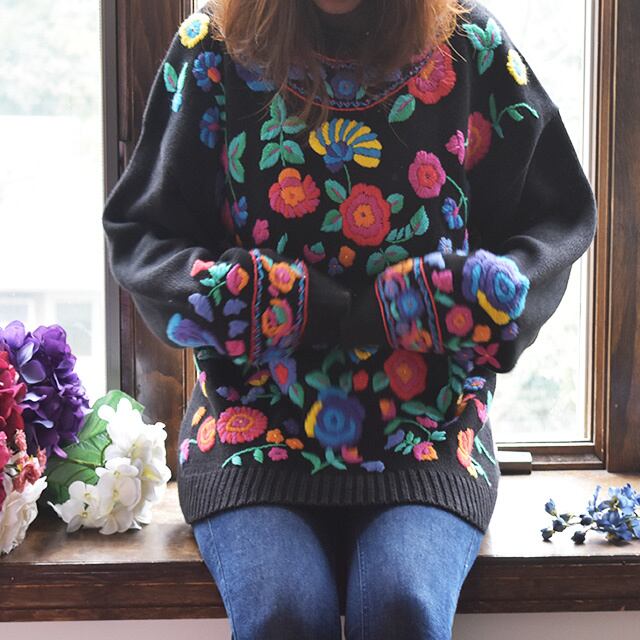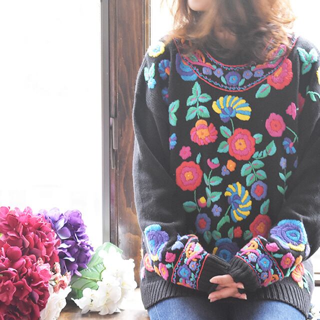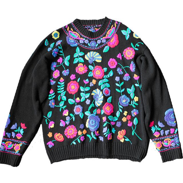 NY直輸入【総刺繍ハンドメイドUSEDヴィンテージニット】