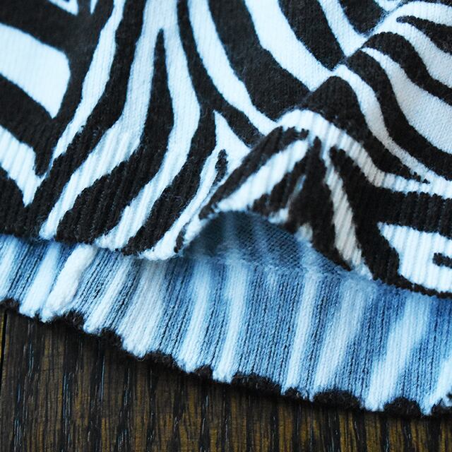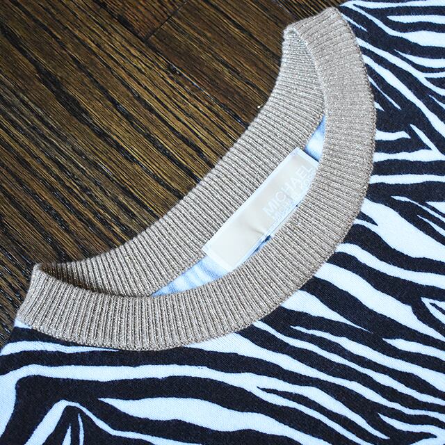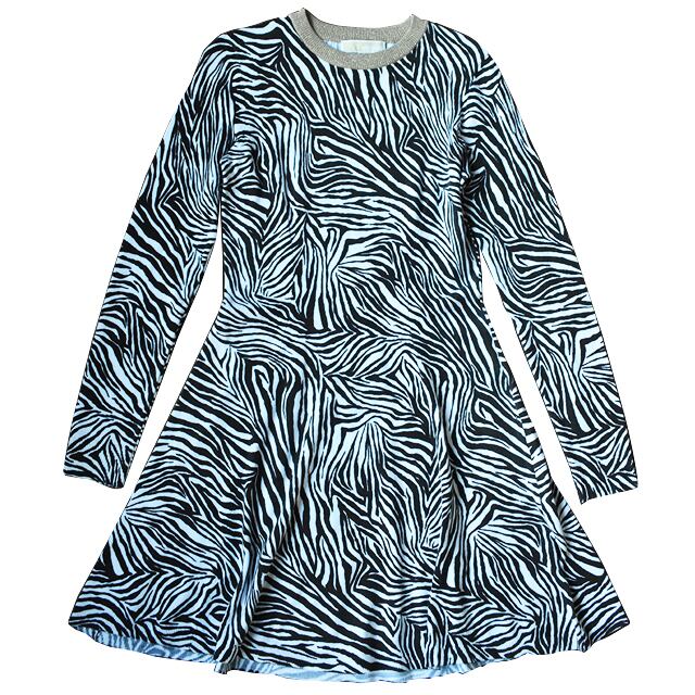 融合するゼブラ柄ニットワンピの到着。